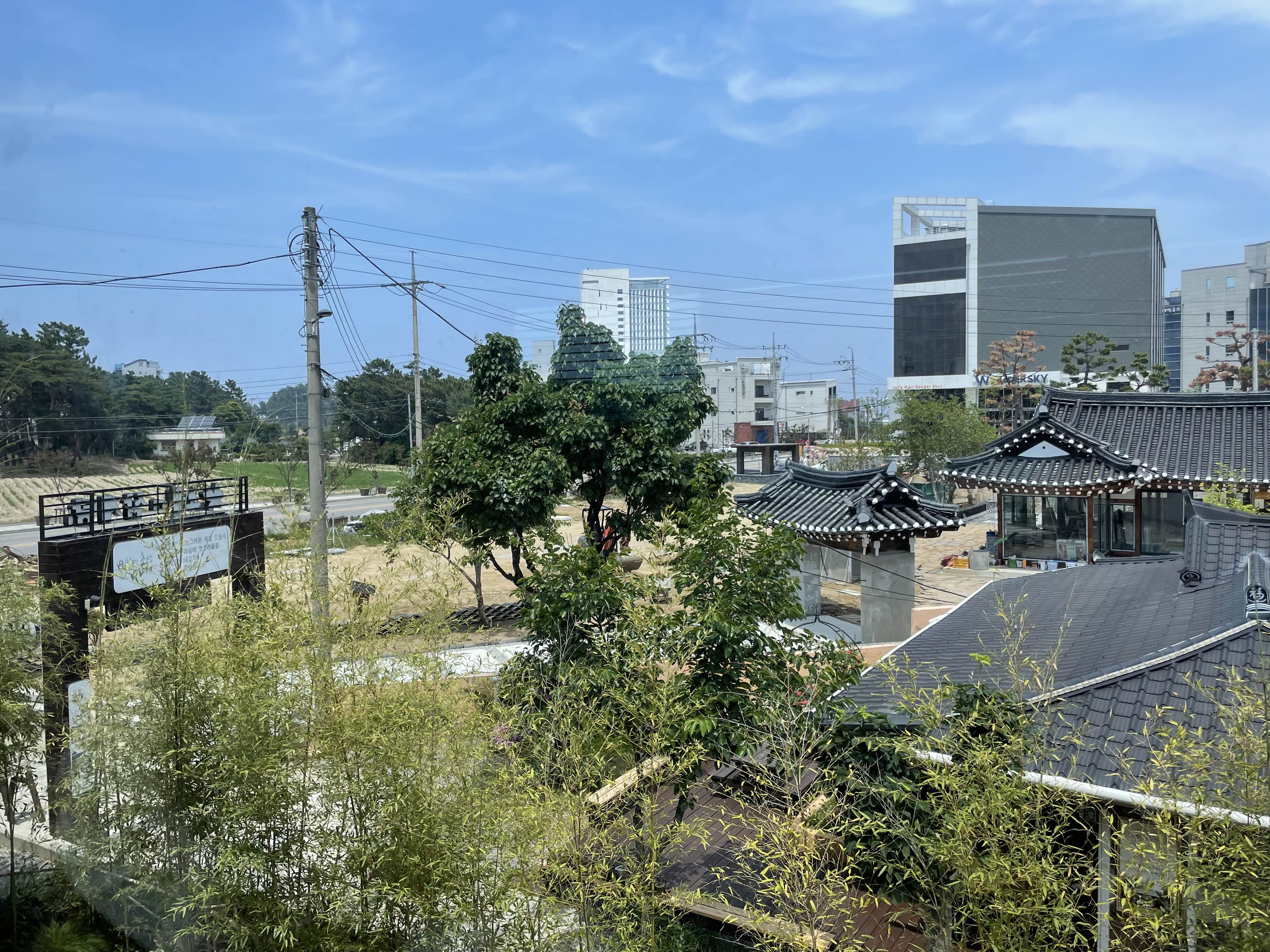 제가 방문했던 날은 정말 날씨가 최고였습니다! 맑고 푸른 하늘과 따스한 햇살 덕분에 '카페 툇마루'의 매력을 더욱 만끽할 수 있었어요. 카페 내부는 통창으로 되어 있어 실내에서도 푸릇푸릇한 바깥 풍경을 감상할 수 있었고, 답답함 없이 개방감이 느껴졌습니다.