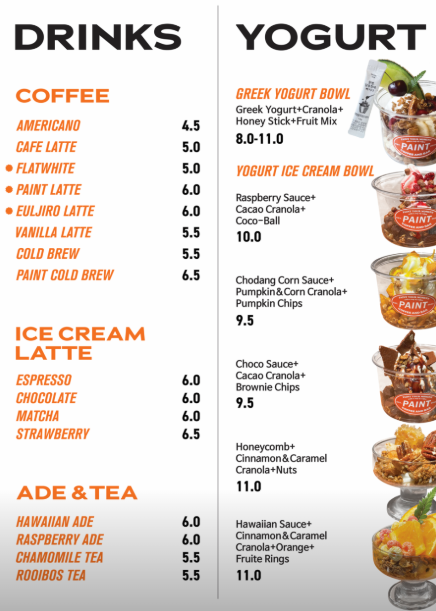 메뉴판은 아래 참고해 주세요!!