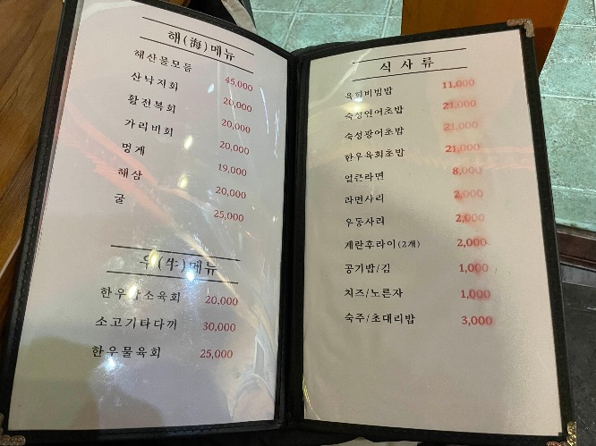 주메뉴말고도 식사류도 다양하고, 해산물과 한우를 각각 주문하는 것도 당연히 가능합니다ㅎㅎㅎ